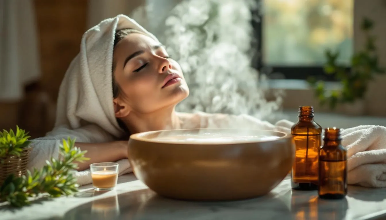 Le grand classique ! Un bol, de l’eau frémissante, quelques gouttes d’huile essentielle et une serviette pour faire la tente.